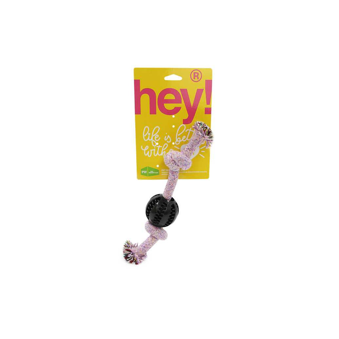 Disfruta momentos inolvidables con el juguete de cuerda Hey! para perros. Fabricado con caucho natural avanzado y una cuerda de doble nudo, ofrece una resistencia superior para sesiones de juego prolongadas. Su diseño de masticación progresiva ayuda a fortalecer la mandíbula de tu mascota mientras juega. Perfecto para rodar, tirar o jalar, este juguete fomenta la interacción y promueve un ejercicio saludable para tu mejor amigo.